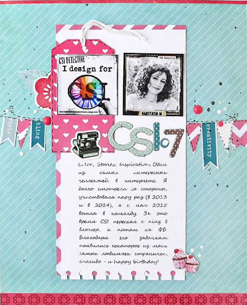 Всем привет! Для тех, кто уже заглядывает в блоги, покажу свою первую страничку в новом году. Нет, это не итоги 2018 (а надо бы), просто страничка про меня и ДК. Здесь я соединила задания моих двух любимых челленжей - скетч от "Расскажи историю" и новое дело от CSI.